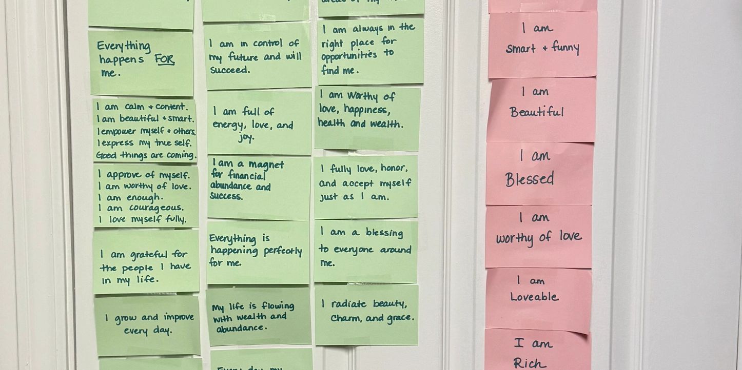 I started small—writing “I am” affirmations on index cards and taping them to my closet door. Every morning, I read them out loud before starting my day. Over time, I began writing 50 affirmations in my journal each morning. It became a simple, powerful way to shift my mindset and reconnect with myself.